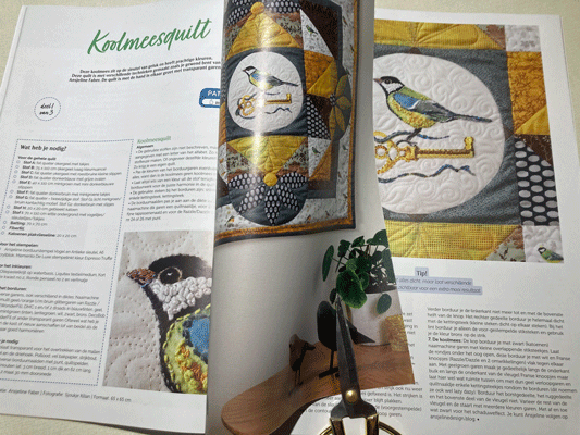 Daarin onder meer de werkbeschrijving 2/3 van Ansjeline haar Koolmees quilt die op de cover van deze uitgave staat. Weer met schitterende foto’s.